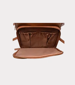 Premium PU leather with a soft luxury finish Spacious main compartment Multiple elastic pockets for easy organization Padded adjustable backpack straps Easy to clean and highly durable Pacifier box