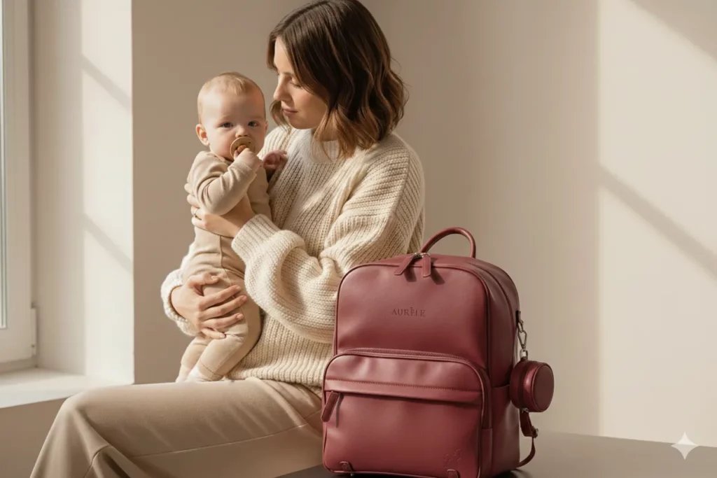 A stylish, practical, and spacious diaper backpack designed for daily life. Enjoy premium PU leather, organized compartments, and all accessories included in one elegant solution.